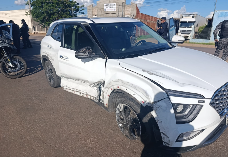 No decorrer do acompanhamento, os militares se depararam com um Hyundai Creta branco, que também passou a fugir ao perceber a presença policial. Durante a tentativa de escape, o condutor do veículo realizou manobras perigosas, pulou quebra-molas e atingiu propositalmente motociclistas que transitavam pela via. As vítimas foram socorridas e permanecem em observação médica, sem risco de morte.