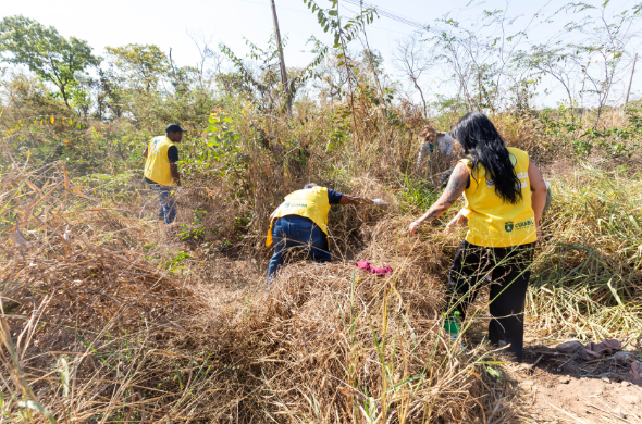 Nesta quarta-feira (3), a Prefeitura de Cuiabá, por meio da Diretoria de Bem-Estar Animal (BEA), resgatou uma cadela e dois filhotes abandonados na Rua X, acesso ao bairro Santa Terezinha, local ainda não habitado e frequentemente usado para descarte irregular de materiais, apesar da atuação dos serviços de limpeza da cidade.