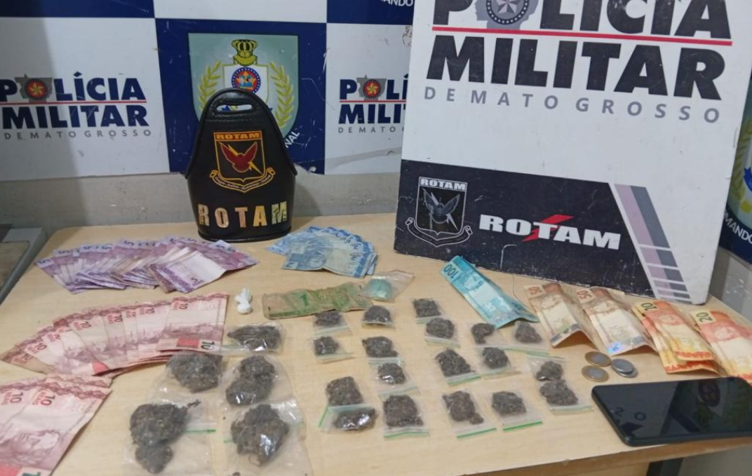 Neste domingo (20.4), policiais militares do Batalhão de Rondas Ostensivas Tático Móvel (Rotam) prenderam três mulheres por tráfico de drogas, no bairro Jardim Vitória, em Cuiabá. Entre as detidas estão mãe e filha, apontadas como responsáveis pela comercialização dos entorpecentes.