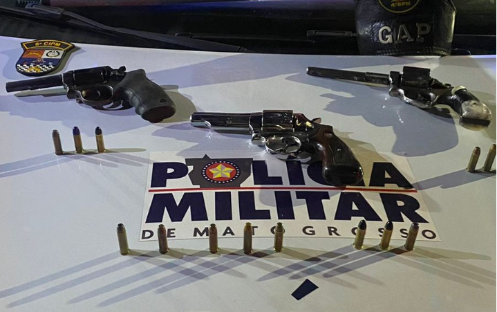 Policiais militares do Grupo de Apoio, do 4º Batalhão, apreenderam, na noite desta terça-feira (08.10), três revólveres calibre 38 e 14 munições, após confronto com três homens na MT-060, em Nossa Senhora do Livramento (39 km de Cuiabá).