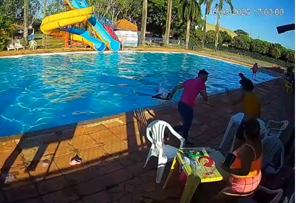 As imagens mostram a vítima sentada próxima à piscina quando o homem se aproxima e tenta pegar uma bolsa sobre uma cadeira. Ao ser impedido, ele parte para cima dela e desfere vários socos no rosto. Uma mulher que presenciou a cena tenta intervir, mas a violência só cessa quando a vítima cai no chão.